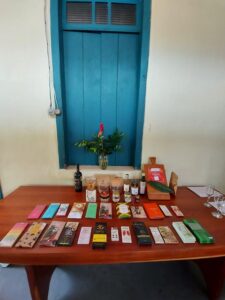 Todas as amostras deste evento são de marcas apoiadoras da Expedição Cacau e Chocolate do Brasil e seus rótulos ficam dispostos para que possam ser fotografados e apresentados durante os eventos.