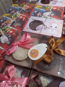 Para agradar ao público infantil na Páscoa, ela trabalhou com um kit Mini Confeiteiro onde a criança decorava seu próprio ovo, um sucesso absoluto nas vendas. As caixas traziam temas como Homem-Aranha, Vingadores, Unicórnio, Sereia e princesas.