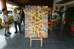 A visita também incluiu m happy hour com o escultor e pintor baiano Goca Moreno, que entregou ao grupo uma obra da série Cabruca, retratando as transformações para uma nova era do cacau.