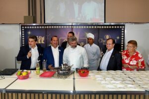 Degustação de chocolates de diferentes origens e regiões do Brasil e do mundo, apresentação de pratos ao vivo por chefes renomados, palestras e outras atrações para adultos e crianças fazem parte da programação da Origem Week 2023, feira gourmet que foi oficialmente aberta pelo governador em exercício, Geraldo Júnior, na noite desta quinta-feira (30), no Centro de Convenções, na capital. O evento, que conta com apoio de diversas secretarias estaduais, segue até domingo (2), das 14h às 22h. A entrada é gratuita, mediante a doação de um quilo de alimento não perecível. Os alimentos arrecadados serão destinados ao programa Bahia Sem Fome, do Governo do Estado. A programação completa da feira pode ser conferida no site: https://origemweek.com.br/