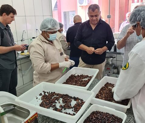 Durante a visita da missão de supervisão do mais novo projeto da CAR, o Parceiros da Mata, as lideranças conheceram todo o processo de fabricação na fábrica de chocolate, a cozinha comunitária e a loja da fábrica. “Mostramos a comitiva nossa rotina aqui na unidade de produção do chocolate de excelência, a valorização do agricultores familiares pagando mais na arroba de cacau fino, a comercialização e os avanços na cadeira produtiva do cacau ao chocolate através do apoio de CAR”, comentou o diretor-presidente da Coopfesba, Osana Crisostomo do Nascimento.