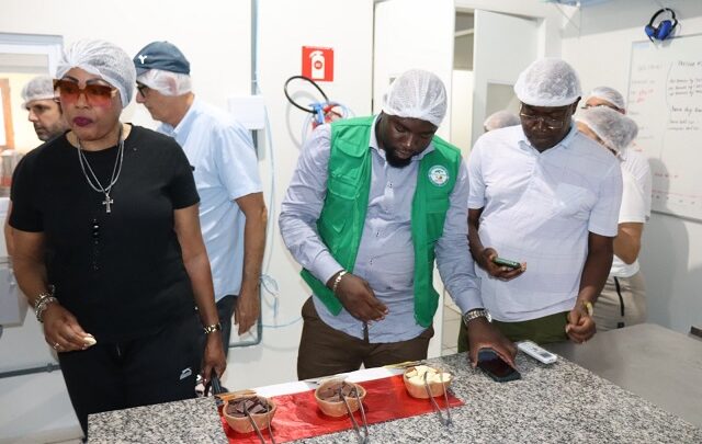 Na última semana, uma comitiva da República de Camarões esteve no Sul da Bahia para conhecer experiências de cacau e chocolate. Entre elas, a ChocoSol integrou a rota do grupo que saiu do tour com inspiração para levar de volta a seu país de origem. A comitiva foi recebida em Ilhéus pela equipe da fábrica: o gerente, Andrey Santos, a coordenadora de produção, Sabrina Alves, a coordenadora do Centro Público de Economia Solidária (Cesol) Litoral Sul, Bárbara Aragão, o presidente da Associação Beneficente Josué de Castro (entidade gestora da agroindústria e do Cesol Litoral Sul), Diego Felisardo e demais colaboradores.