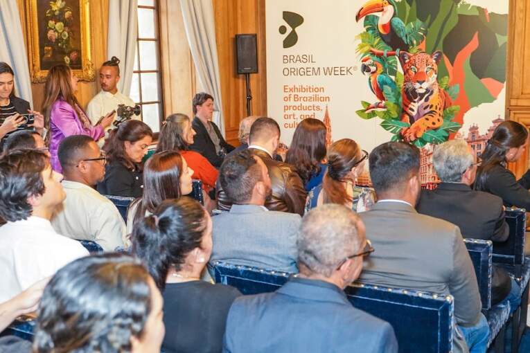 “O evento vai falar por si só. Nós temos aqui instalados nessa casa belíssima uma exposição de fotografia e arte do Brasil. No andar inferior, também na passagem, outras cadeias produtivas, inclusive com a moda, biojóias, artesanato, cerâmica. No primeiro piso, a Bahia e o Pará como estados apoiadores. Eu quero agradecer a sensibilidade e a visão dos governadores Helder Barbalho e Jerônimo Rodrigues, que viabilizaram esse projeto com apoio absolutamente fundamental da embaixada do Brasil, da Apex e outros parceiros. Esse evento é feito por e para os produtores, principalmente os pequenos produtores do Brasil”, disse Marco Lessa, CEO do grupo M21 e criador do Brasil Origem Week