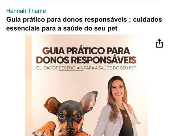 A Médica Veterinária Dra. Hannah Thame, de Vitória da Conquista, no Sudoeste da Bahia, está lançando seu primeiro livro, “Guia Prático para Donos Responsáveis-Cuidados Essenciais para a Saúde do seu Pet”, em formato e-book, já disponível na Amazon, uma das maiores plataformas de livros digitais do mundo