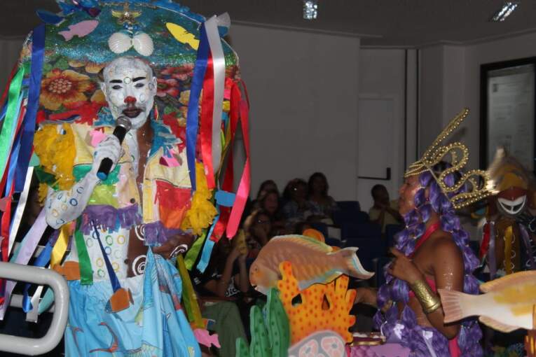 O espetáculo é promovido pelo Grupo Afroindígena de Antropologia Cultural – Umbandaum e pelo Movimento Cultural Arte Manha, ambos com sede em Caravelas, no extremo sul da Bahia. A iniciativa, idealizada pelo Projeto Budiões — um programa de pesquisa e conservação patrocinado pela Petrobras —, tem como foco os budiões, ou peixes-papagaio, espécies essenciais para a saúde dos recifes de corais. Entre eles, destaca-se o budião-azul, listado como ameaçado de extinção no Brasil. “A narrativa une ciência e arte ao explorar tanto os aspectos biológicos dessas espécies quanto os mitos e tradições culturais dos povos costeiros”, explica a professora Fabiana Hackradt, cientista e coordenadora do projeto.