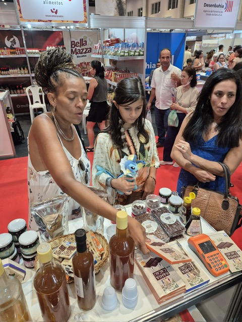 No estande da Bahia Cacau, um dos produtos mais procurados foi o mel de cacau. Quem experimentou aprovou e levou para tomar em casa com a família. Tinha também para os clientes as gotas de chocolate, ovos da páscoa, geleia do mel do cacau, tabletes de chocolates, melaço do meu de cacau e licor. Todo mundo amou os sabores autênticos da Bahia Cacau.