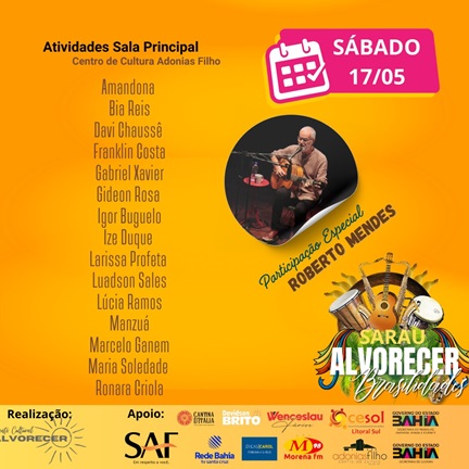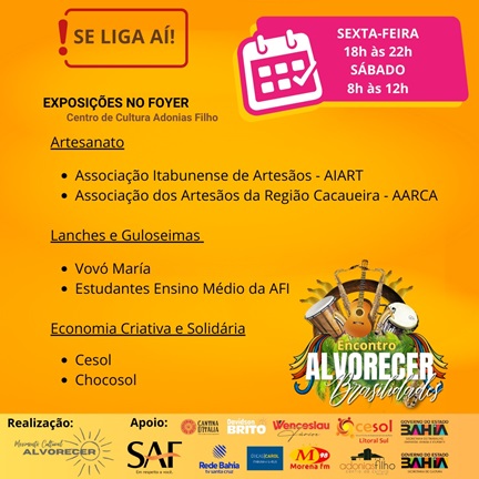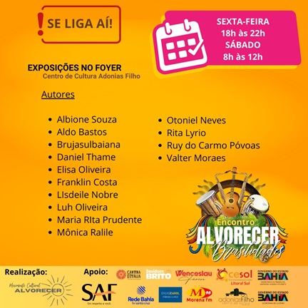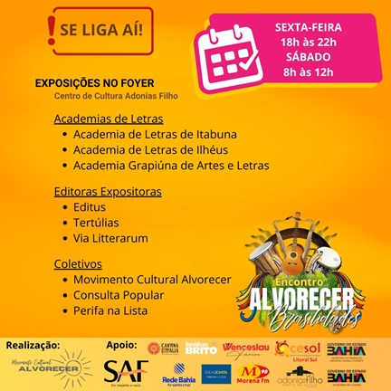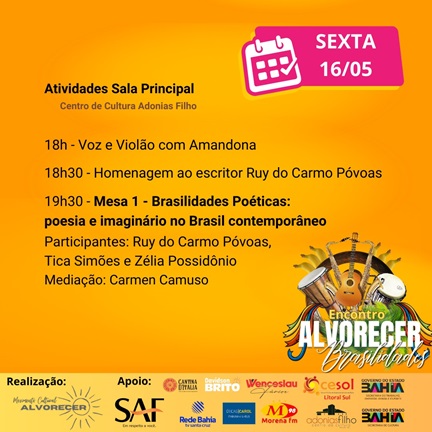 Um grande encontro de saberes culturais e populares Esse será o tom do   Encontro Alvorecer Brasilidades!, que acontece  nos dias 16 e 17 de maio, no Centro de Cultura Adonias Filho, em Itabuna.