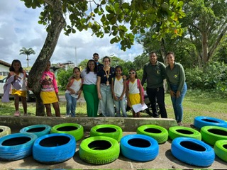 Na última sexta-feira, 23, foi realizada a segunda fase do projeto, com a pintura de pneus que serão utilizados na próxima etapa, destinada à requalificação de um ponto de descarte irregular de resíduos, localizado na entrada da escola. A ação foi marcada pelo entusiasmo e a criatividade das crianças, que participaram ativamente da atividade.