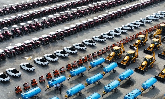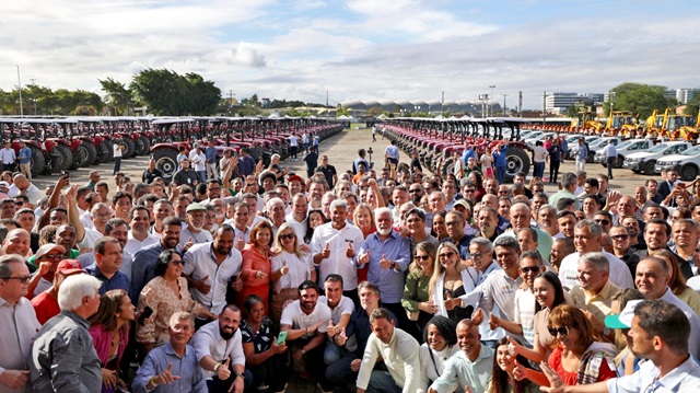 A agenda do governador contemplou ainda a entrega de máquinas e equipamentos agrícolas aos municípios, fruto de recursos do Governo do Estado e do Governo Federal, por meio de emendas parlamentares estaduais e federais. Estão sendo entregues mais de 11 mil veículos e equipamentos — tratores com implementos, motoniveladoras, retroescavadeiras, kits de irrigação, máquinas forrageiras, veículos utilitários, grades aradoras e caixas d’água, entre outros. A intenção é ampliar o acesso à mecanização rural, apoiar a produção de alimentos e garantir a infraestrutura necessária para o escoamento da produção.