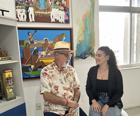 A estudantes Emanuelly Guido e Marcela Capinan, do curso Produção Cultural, disciplina “Cartografias Digitais do Sul da Bahia”, entrevistaram o jornalista e escritor Daniel Thame.