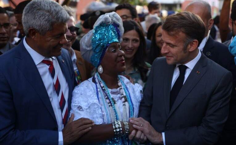 Em roteiro turístico pelo Pelourinho, Jerônimo Rodrigues apresenta a cultura baiana para Emmanuel Macron