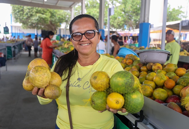 A feirante Jaciara Macedo, de Itaju do Colônia, ressalta que os novos espaços valorizam o trabalho dos comerciantes locais e melhoram a renda das famílias.