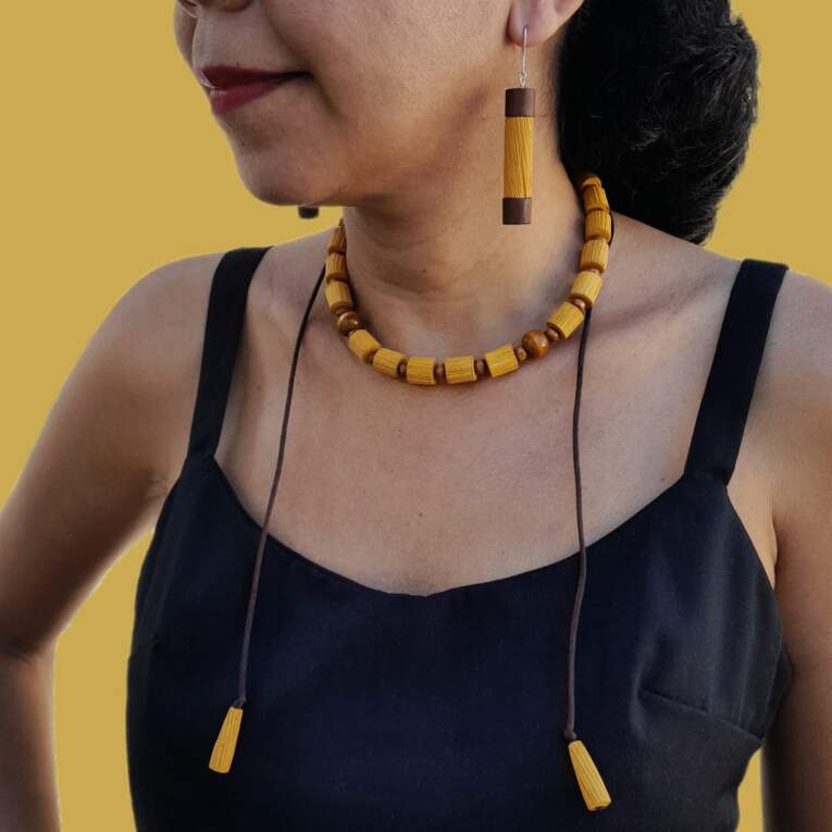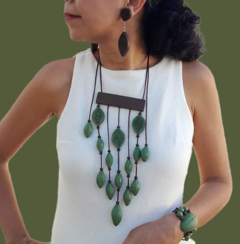 Mais do que fornecedores, o hub é composto por parceiros de inovação para os desafios sociais e ambientais, atentos aos objetivos do desenvolvimento sustentável e as práticas ESG. A Lanjuly Design levou para o evento jóias artesanais feitas com biomassa de papel, papelão e casca de milho. No total foram seis peças, mostrando criatividade, inovação, sustentabilidade com inspiração na cultura regional.