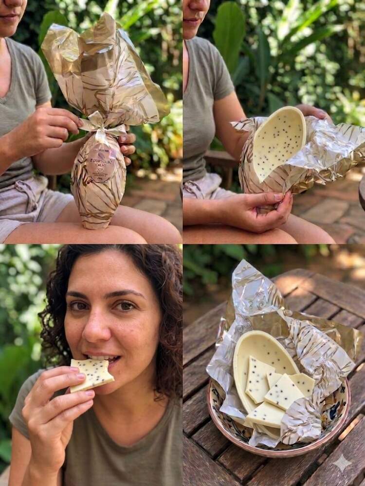 “Celebrar o Dia do Cacau às vésperas da Páscoa é lembrar que o chocolate nasce na floresta. Nossos ovos são o resultado de um ciclo de respeito à terra e à biodiversidade”, afirma Júlia Vieira, chocolate maker da Tombador. “A nossa produção de Páscoa é  parte do que a gente já constrói nas nossas barrinhas. A ideia foi trazer esses mesmos sabores para os ovos, respeitando o perfil de cada chocolate e mantendo esse cuidado com o equilíbrio, e no fim, é sobre entregar chocolate de verdade”, destaca Júlia.