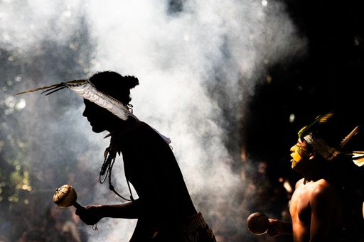 No dia da festa, a aldeia desperta sob o perfume da resina, do barro e das folhas verdes, dando início a um ritual de força e identidade. Entre a corrida de tora, a caçada e o batismo com a terra ancestral, a vida pulsa no cauim, na troca dos cocares e nas pinturas corporais que narram histórias na pele. O Awê, em seu canto e dança, une a comunidade em uma oração coletiva – um cenário capturado pelo olhar de Pedro Nunes ao longo de uma década. Para o fotógrafo, registrar o Aragwaksã é um ato de salvaguarda. “É fotografar o que não pode ser apagado; é preservar a memória e a resistência dos povos originários do Brasil”, explica.