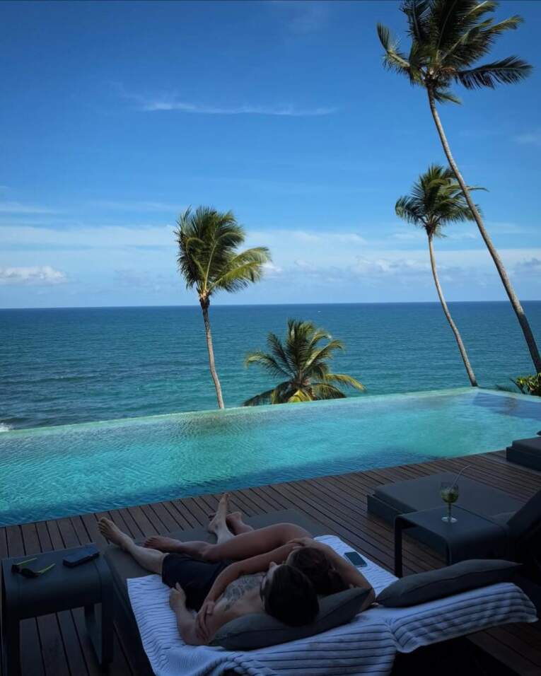 O DJ Alok e sua esposa, a médica Romana Novais, aproveitam o tempo de descanso no início do ano para curtir as belezas naturais de Itacaré, no sul da Bahia. O casal está hospedado em uma casa luxuosa, com vista para o mar. O custo da diária na hospedagem de alto padrão é de R$ 13 mil.